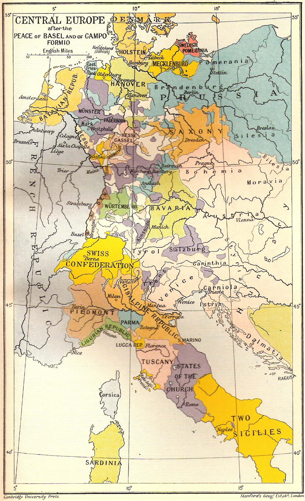 Cenral Europe after the Peace of Basel (1795) and of Campo Formio (1797).