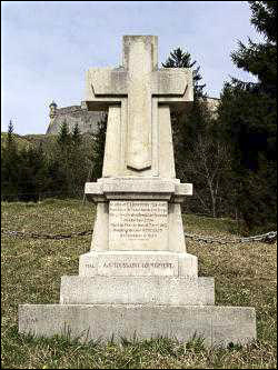 Stone cross memorial for Toussaint Louverture at the foot of Fort de Joux.