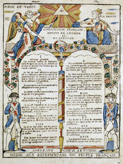 Illustrated copy of the Declaration of the Rights of Man and of the Citizen. Bookillustration. French (undated).