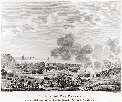 The Cap Français Fire in 1793 during the fighting between troops under the command of Commissioners Sonthonax and Polverel against the French General Galbaud.