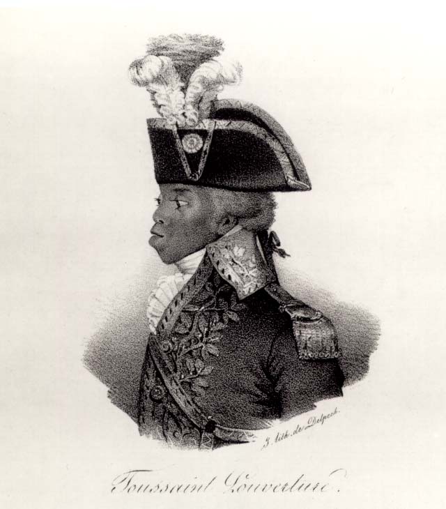 Toussaint Louverture (looking left) portrait by Nicolas Eustache Maurin (1838).