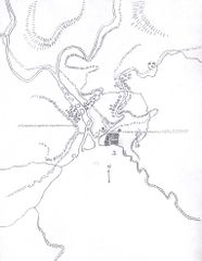 Pencil sketch of siege of Jacmel, Saint-Domingue, in 1800.